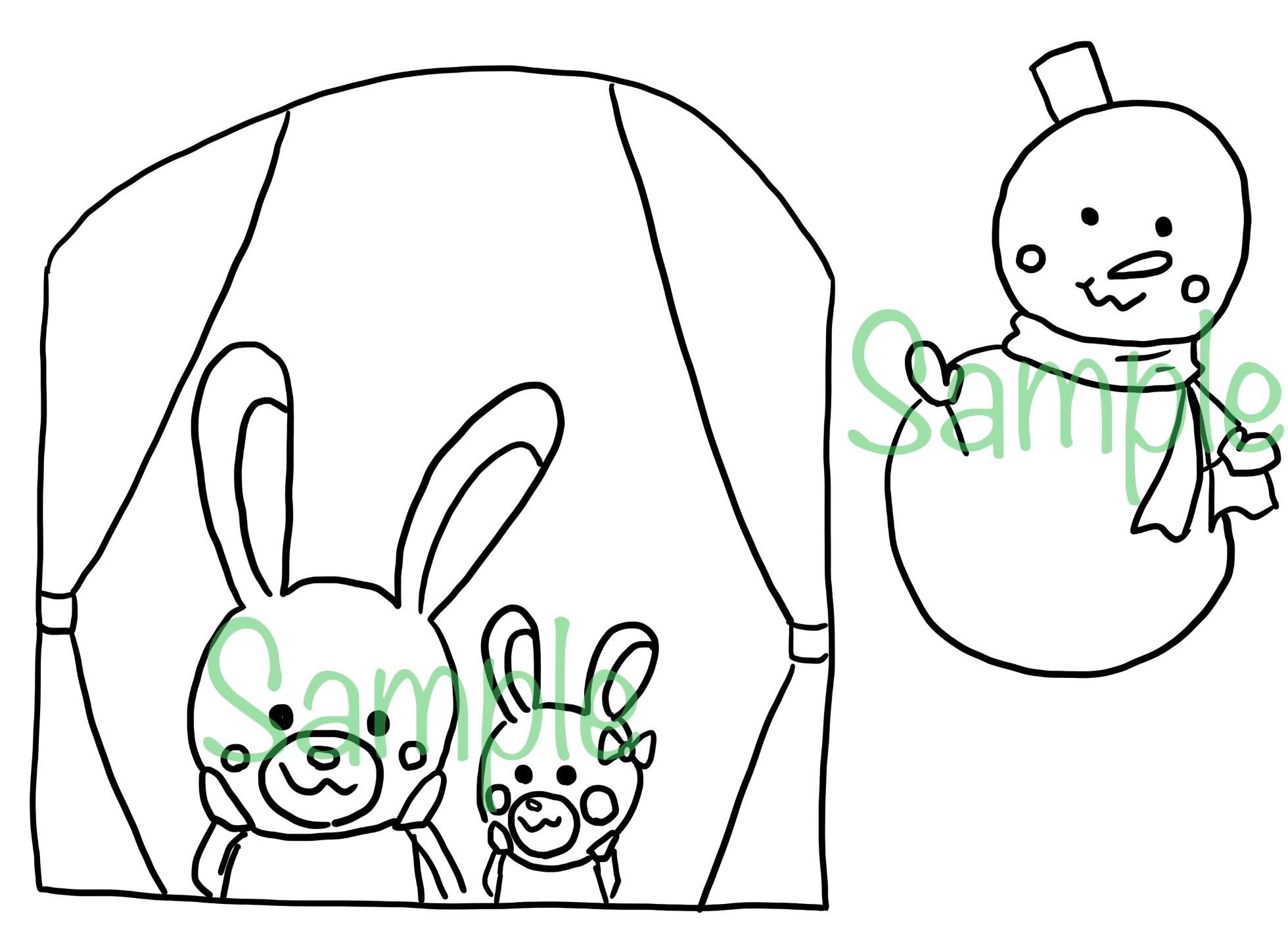 「うさぎ野原のクリスマス」の手書きイラストPDFデータです。 パネルシアターやペープサートにご利用ください。 こちらの商品はモノクロ版です。 ※原本はA4サイズです。 ※ホワイトボードは60㎝×44㎝のものです。